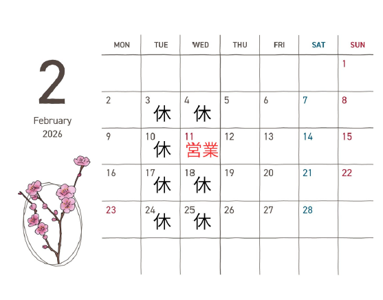 2月営業日について